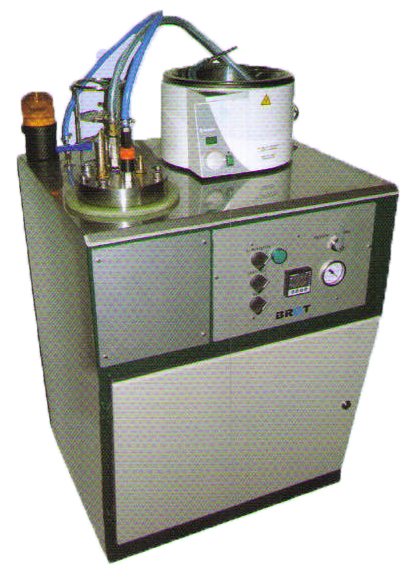 用于在真空、高壓、高溫下,對選定的多個柱狀體巖芯樣品進行注膠工作,把配置好的帶色環(huán)氧樹脂注入到巖石孔隙中,為測定觀察巖石孔隙度大小等研究工作而獲取所需參數(shù)。壓注到巖石孔隙中的不同彩色膠液能夠同時固化。該設(shè)備具有真空系統(tǒng)、加熱系統(tǒng)、加壓系統(tǒng)、參數(shù)監(jiān)控系統(tǒng)、可調(diào)膠液容器、放置樣品倉、輔助膠液等,專門用于地質(zhì)巖樣。