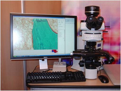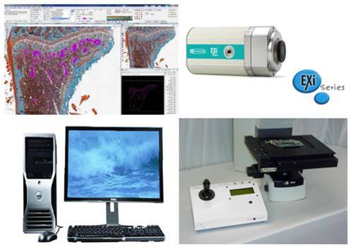 該系統(tǒng)由骨形態(tài)測(cè)量分析軟件、高像素CCD圖像采集系統(tǒng)、高性能CPU專用電腦主機(jī)、高對(duì)比度觸摸屏顯示器和顯微鏡電動(dòng)測(cè)量平臺(tái)(可選件)組成??捎糜谛螒B(tài)學(xué)相關(guān)的數(shù)字病理學(xué)分析任務(wù)。醫(yī)生將骨組織、牙齒、或含有植入物的軟硬組織染色切片,在熒光顯微鏡下進(jìn)行觀察后,通過軟件控制相機(jī)自動(dòng)采集圖像,將放大后的圖像傳輸?shù)诫娔X上,利用骨形態(tài)學(xué)專業(yè)軟件進(jìn)行標(biāo)記、測(cè)量、統(tǒng)計(jì)和數(shù)字病理學(xué)分析,以此得出骨組織形態(tài)計(jì)量學(xué)研究分析報(bào)告。能為醫(yī)學(xué)組織工程學(xué)研究、生物醫(yī)學(xué)與轉(zhuǎn)化研究、新材料的生物相容性研究、骨與口腔心血管等內(nèi)植物材料研究、數(shù)字病理分析以及教學(xué)等提供可靠的組織學(xué)、形態(tài)學(xué)和病理學(xué)的評(píng)價(jià)依據(jù)。