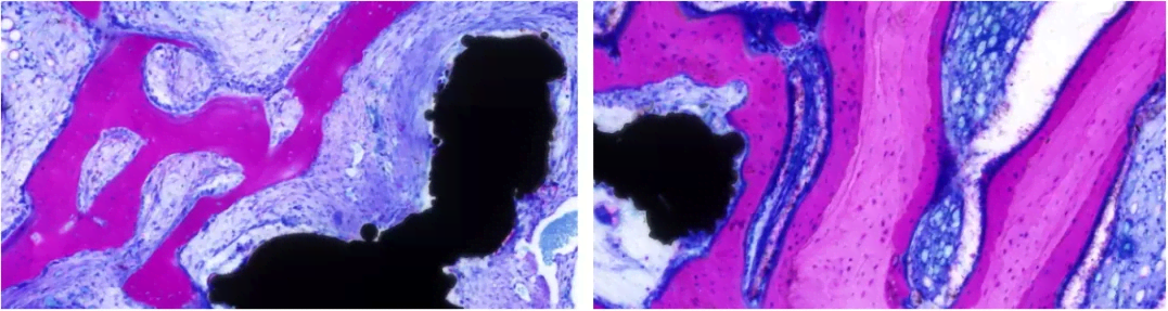 圖4 兔股骨植入(甲苯胺藍(lán)染色)