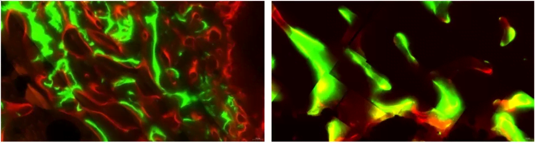 圖7 股骨髁植入(茜素紅和鈣黃綠素標(biāo)記)
